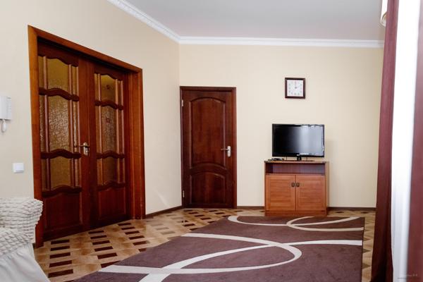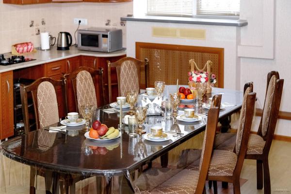В доме 5 комнат, 2 санузла и просторная кухня-столовая. Есть всё необходимое для комфортного проживания: холодильник, кондиционеры, телевизоры, Wi-Fi, микроволновая печь, стиральная и посудомоечная машины, мангал, казан, утюг и фен.