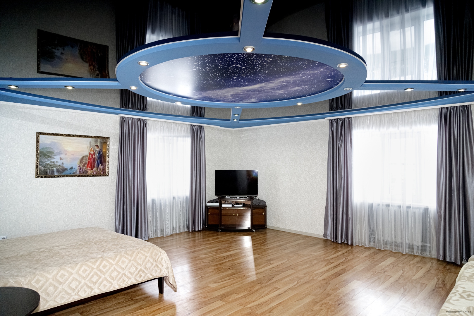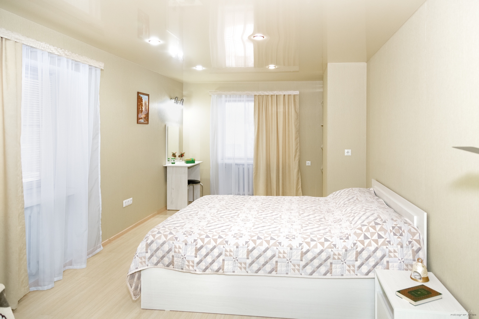 Размещение до 8 гостей: 3 двуспальные и 2 односпальные кровати.